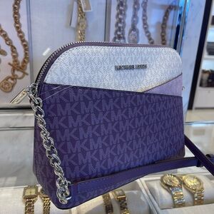 MICHAEL KORS Jet Set Travel Color-Block Signature Logo Crossbody Bag Dark Purple