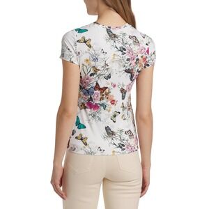 L'AGENCE Ressi Floral Butterfly Crewneck Fitted Tee Women XXS White Multi NEW