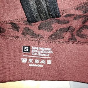 Bold Leopard Zip-Front Activewear Top - Thumbholes - Size Small