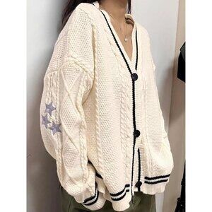 Features: This oversized V-neck cardigan is made from soft, breathable, and elastic acrylic knit. It has a relaxed, casual fit with long sleeves, button closure, and a chunky cable knit design that adds a cozy vibe. Ideal for staying warm and stylish during cooler days.