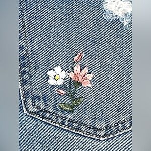 Chic blue jean shorts with colorful floral details. Ideal for casual wear.