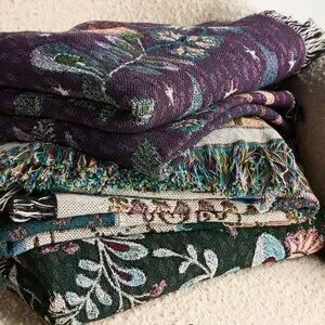 Anthropologie Willa Cotton Woven Throw Blanket 54" x 72"
