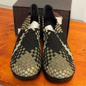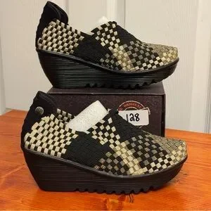 Bernie Mev Lulia woven memory foam wedge shoes in a beautiful bronze hue. These comfortable Mary Jane style shoes feature a flexible woven upper and a supportive wedge heel, perfect for all-day wear. The memory foam insole provides exceptional cushioning and comfort. Ideal for casual outings, travel, or adding a touch of effortless style to your everyday wardrobe.