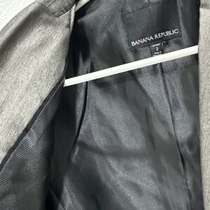 Elegant gray blazer by Banana Republic. Perfect for professional settings. Tailored fit with classic lapel.