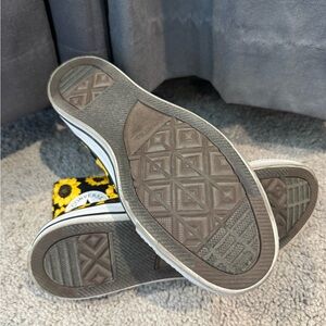 Vibrant high-tops featuring a bold sunflower pattern. Classic black and yellow colors.