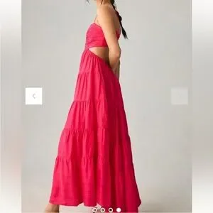 Anthropologie Let Me Be Cutout Tiered Maxi Dress Hot Pink XSP