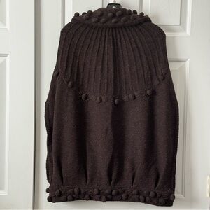 Cozy and stylish brown sweater vest with a unique pom-pom design. Perfect for layering and adding a touch of elegance to your outfit.