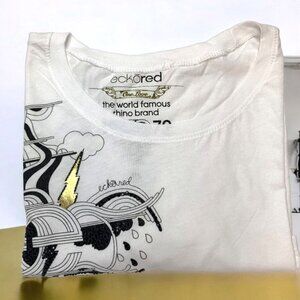 Retro Ecko Red White Gold Graphic Cap Sleeve Tee Shirt NWOT