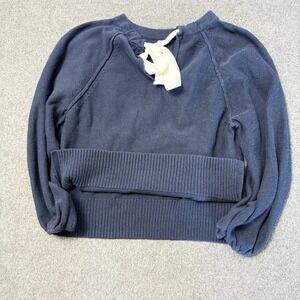 Anthropologie Navy Tie Neck Knit Sweater Top Blouson Sleeve M