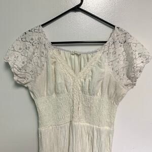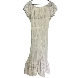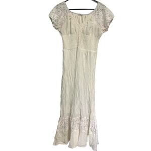 Anna-Kaci California White Cream Lace Cotton Blend Boho Sleeve Maxi Dress XL