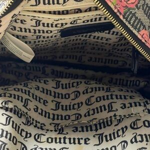 Embrace a touch of chic with this stylish Juicy Couture mini backpack. Featuring a sophisticated black base. This mini backpack showcases the iconic Juicy Couture aesthetic with its detailed craftsmanship. It typically includes adjustable straps for comfortable wear and a secure closure to keep your belongings safe. The interior provides ample space for smaller items, making it both practical and fashionable. The floral motif adds a pop of color and personality, standing out beautifully against the black background.