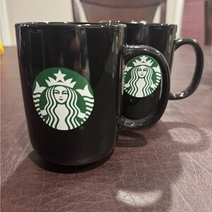 Sleek black mug featuring the iconic green Starbucks logo. Ideal for enjoying your favorite brew.