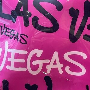 Crafted in a compelling **vivid** pink and black design, this tote bag is ready for its next adventure. It comes in new without tags condition, offering a fresh addition to your accessory collection. Showcase your love for Las Vegas with this playful and practical tote.