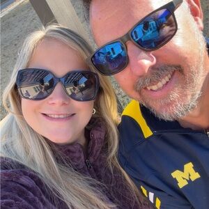 Comfortable wide leg pants. Stylish blue with black accents. Perfect for casual wear. Hole on leg. See photos. Thick and cozy.