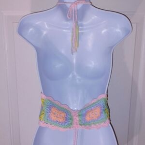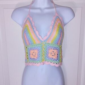 This pastel rainbow crochet halter top from WoWo is new without tags, perfect for sunny days. Great for festival or beach life. Ladies size medium.