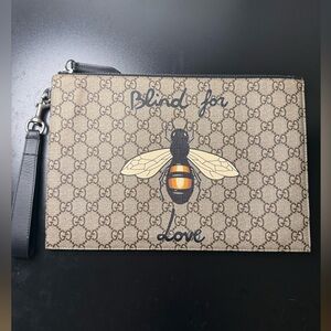 Blind For Love 🐝 Pouch Adorable pouch perfect for use as a clutch, wristlet or travel bag. Canvas is thick and clean. I. Strap is detachable. Zipper runs smoothly and shows tarnishing.