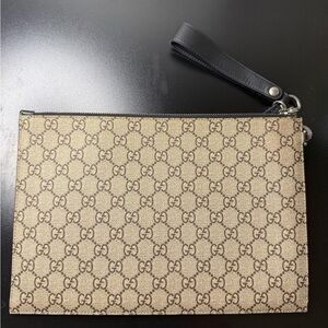 Authentic GG Supreme Monogram Blind For Love Wristlet Pouch Black