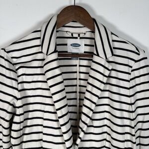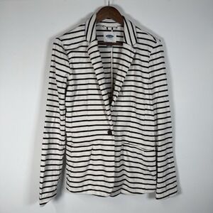 Old Navy Women Stripe Black And White Long Sleeve Button Blazer Jacket Size M