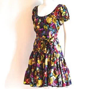 Betsey Johnson Floral Silk Flounced Dress - USA