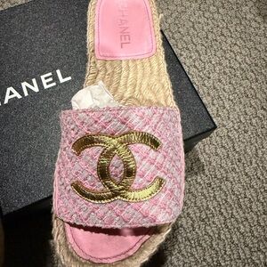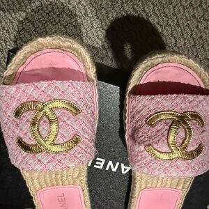 Chanel pink gold CC mules slides in box size 8 great condition bought Nieman Marcus sooo comfy so pretty