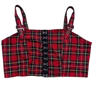 Social Collision Hot Topic plaid gothic crop tank buckle grunge punk Christmas L