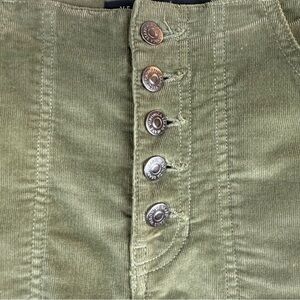 Veronica Beard crosbie wide high waisted cropped corduroy pant. In the color clover. In great pre-owned condition with no visible flaws. A soft corduroy made of a primary cotton blend with some stretch and a button fly closure. High waisted wide legged cropped pant is the perfect style for any silhouette.