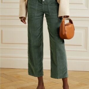 Veronica Beard Crosbie Wide Leg Crop High Rise Corduroy Forest Green Size 26