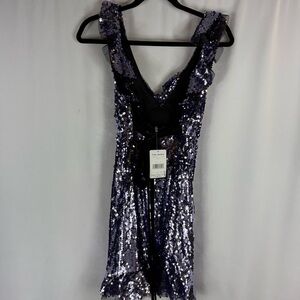 Free People Sequin Mini Dress in Purple and Black Size:6