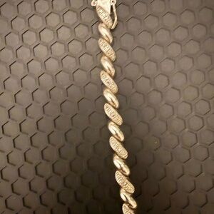 This elegant silver bracelet adds a touch of sophistication to any outfit. Perfect for any occasion. 925 R China sterling silver bracelet women used Push/Slide Lock 8 inches 16grams total weight. Pre owned in great condition.