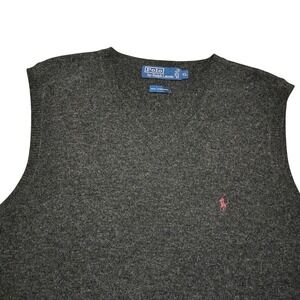 Polo Ralph Lauren Sweater Vest Mens XL Gray 100% Lambswool V Neck Pullover