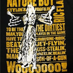 Made from high-quality materials, this shirt is comfortable and durable. It's available in 2XL size, making it a great choice for fans who want to show their support for Ric Flair in style. Whether you're wearing it to a wrestling event or just out and about, this shirt is sure to turn heads and make you feel like a true wrestling fan.