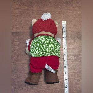 Adorable bearista bear wearing a red hat and green vest, reading a book. 10 inches. Perfect for holiday decor. Starbucks Coffee company 2010, 97th edition. Comes with original tags. There is writing on the back of the ear tag as shown in the pictures. See the pictures for measurements and condition.