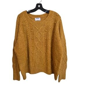 Old Navy Cozy Grandmacore Large Chunky Bobble Knit Sweater Gold Yellow New