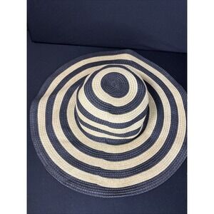 J. Crew Women's Floppy Brim Sun Hat – Tan & Black Woven Summer Beach Hat