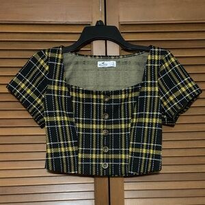Vintage Y2K Black and Yellow Plaid Crop Top Small S