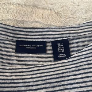 Adrienne Vittadini Navy Blue and White Striped Long Sleeve Top