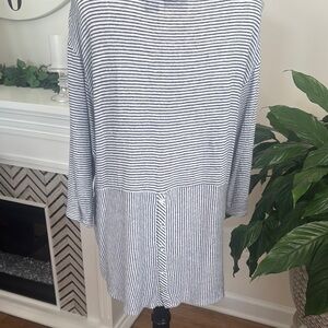 Stylish long sleeve top with classic navy blue and white stripes. Perfect for casual outings. Light weight and in great condition.