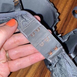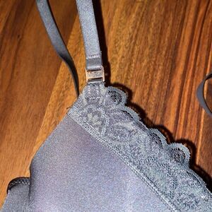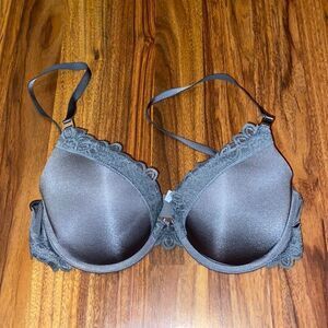 Excellent condition! This bra was only worn once! Extra boost push-up bra. The extra padding is removable, as shown in pictures. Beautiful steel grey color, is lovely lace trimmings.