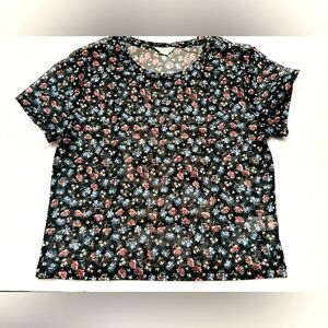 Aeropostale Floral Blouse Top Size Large Sheer Black with Multicolored Flowers