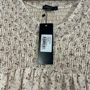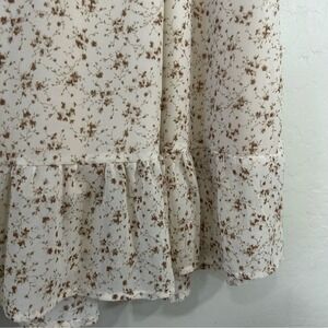 Beautiful new-with-tags Mikarose floral midi dress in a soft toffee beige with delicate brown floral print.