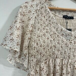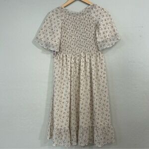 Mikarose Floral Smocked Midi Dress Large Flutter Sleeve Prairie NWT Soft Girl