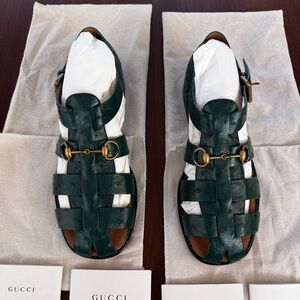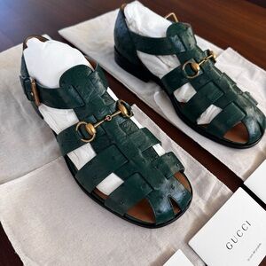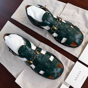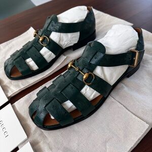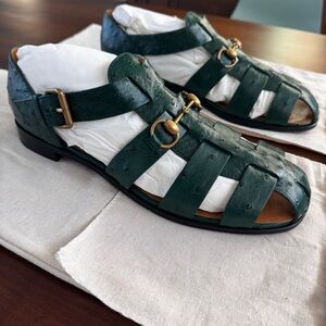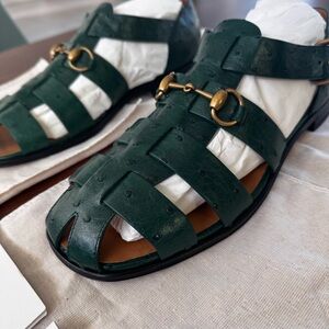 Gucci Exotics Men’s Emerald Green Ostrich Leather Fisherman Sandals Size 10 NWT