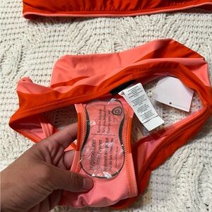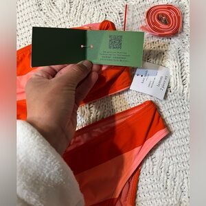 Stylish bandeau bikini with vibrant stripes. Perfect for summer fun.