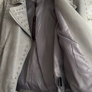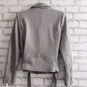 NWT Vigoss Studded Faux Suede Moto Jacket Size Small gray