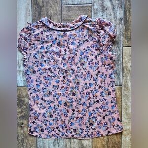 ZARA Floral Button Front Blouse Pink Blue Cottagecore Size Small EUC