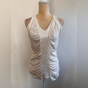 Worthington tank top with ruching irradecent sequins size large Y2K