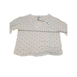 This is a new with tags Plush brand pajama set, style LS108HRT. The set includes a long-sleeved top and shorts, both made of a soft, lightweight fabric. The color is white with red heart print. The top features a round neckline The shorts have an elastic waistband and ruffled hems. The size is small. The set is in new condition with original tags and packaging."