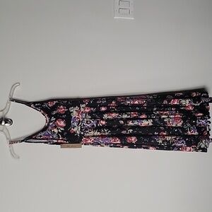 NWT Reformation XS Cha Cha Tank Skater Dress Midi Floral Black Jersey Fit Flare