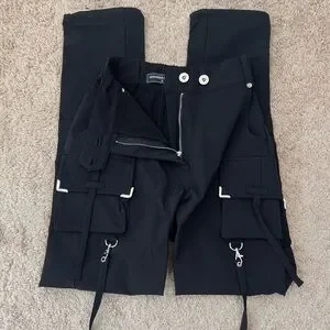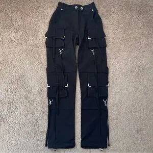 Maniere De Voir Black High-Rise Women’s Cargo Nylon Blend Utility Pants Size 6
