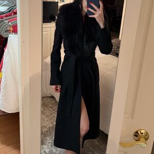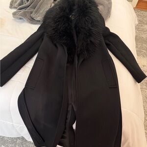 Zara Wool Coat with Removable Faux Fur Lapel and Belt